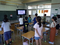 最後に校歌斉唱。子どもたちの歌声が、各教室を結び校舎中に響き渡りました。学級活動では、夏休みの思い出を伝えたり、自由課題を紹介したりして、各クラスで学級開きが行われました。2学期も、保護者、地域の皆様に支えていただきながら、子どもたちが充実した学校生活を過ごすことができるよう努めてまいります。