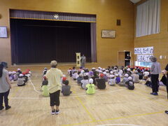 その後、揺れが収まり、避難指示の放送が入ると、子どもたちは、「お・は・し・も・ち」を守り、体育館に真剣に避難することができました。校長先生からは「自分の命は自分で守れるようになること」など命の大切さについてお話がありました。