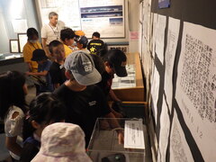 次に、宇宙空間について教えてもらい、「櫛池の隕石」について学びました。重さや手触りを確かめるなどしながら、地域のお宝を再確認していました。