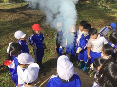 11月13日(木)秋晴れの中、1・2年生が焼き芋づくりにチャレンジしました。畑で採れたサツマイモをよく洗って新聞紙で巻いて、アルミホイルに包む準備を、みんなで張り切って行いました。