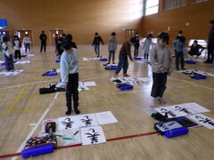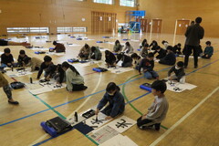 子どもたちは、籠書き練習をしながら、筆圧や筆勢、筆使い、ポイントなどを分かりやすく教えていただき、熱心に練習に励んでいました。学年部で書を見合った際は、気持ちよく書けたことに拍手を送る素敵なかかわりも見られました。